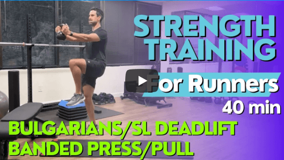 This strength training for runners follow along requires no equipment which makes it perfect for at home strength training for runners. The video is a 30 minute strength training for runners including warm up, core activation, and a 3 round circuit of strength exercises. These videos are great for marathon, half marathon, 10k, and 5k strength training. If you are starting a couch to 5k training plan, these workouts will help avoid potential overuse injuries from running.